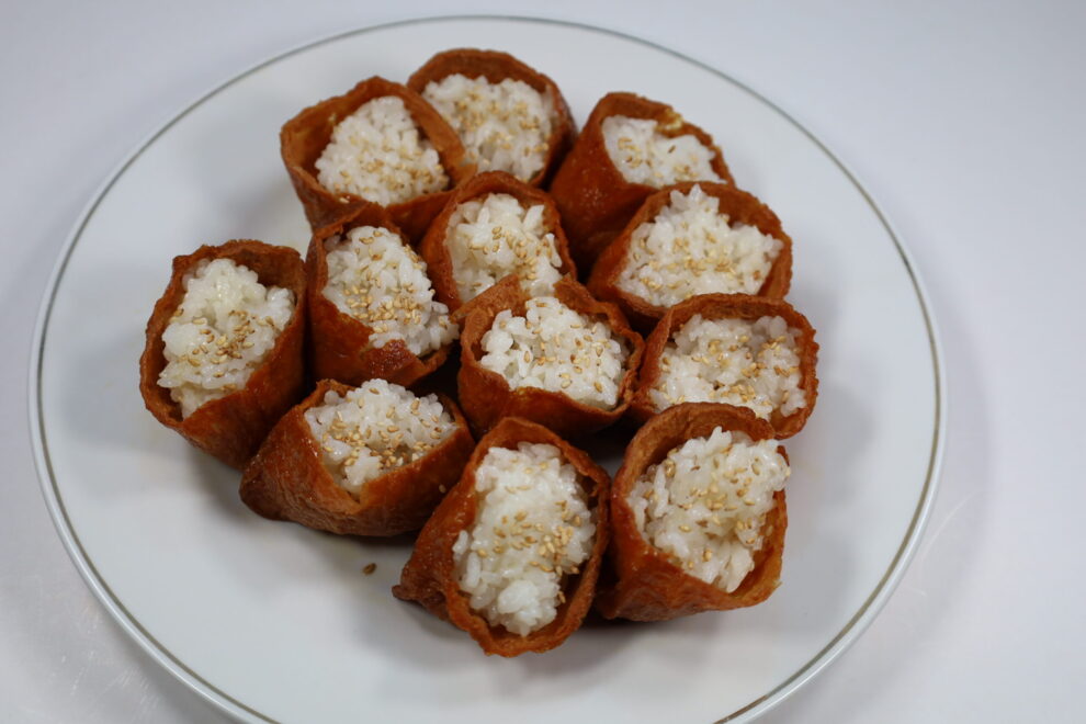 The development of inari sushi originated in the Edo Period of Japan, 1603-1868. It is named after the Shinto deity of rice, Inari Okami (kami…